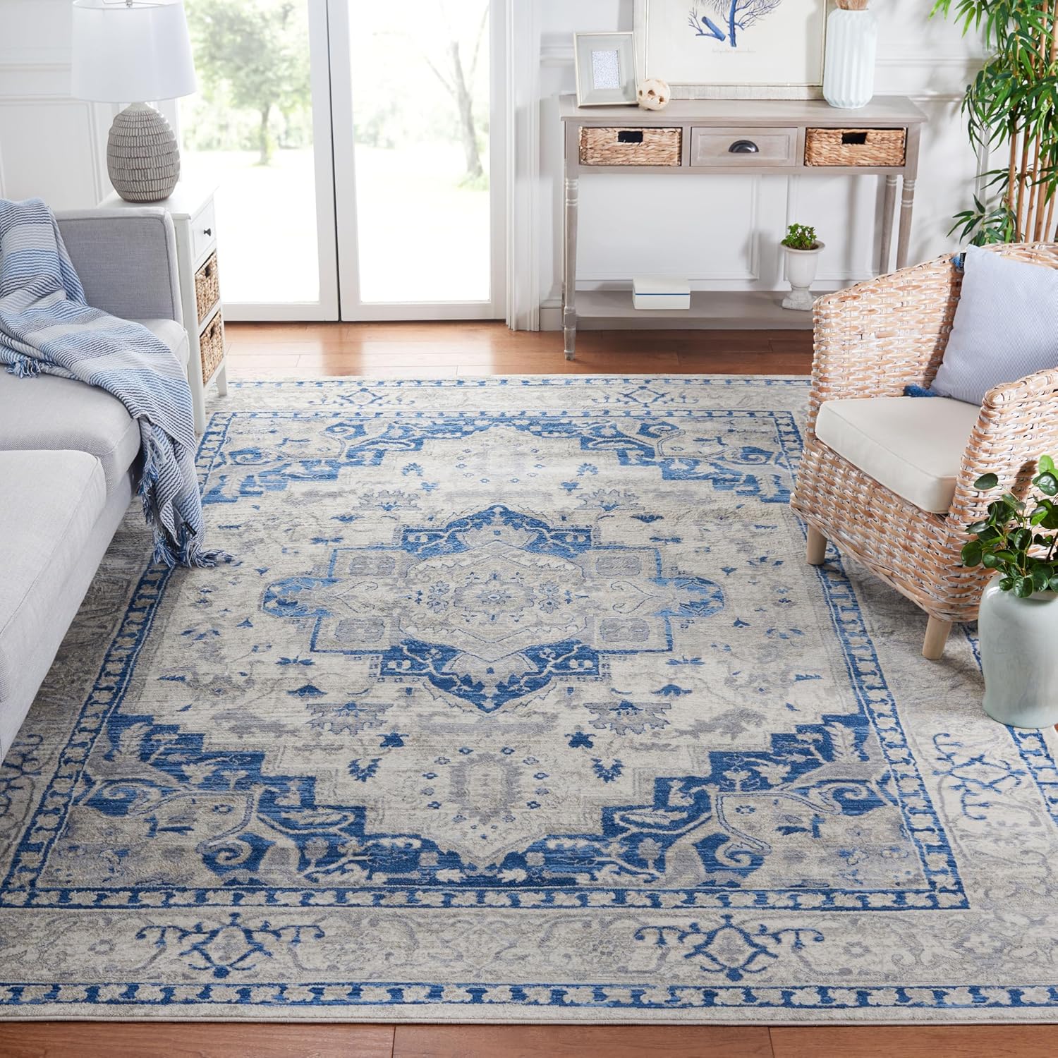 | Model Name | SAFAVIEH Brentwood Collection BNT851G Medallion Distressed Non-Shedding Living Room Dining Bedroom Area Rug 12' x 15' Light Grey/Blue |